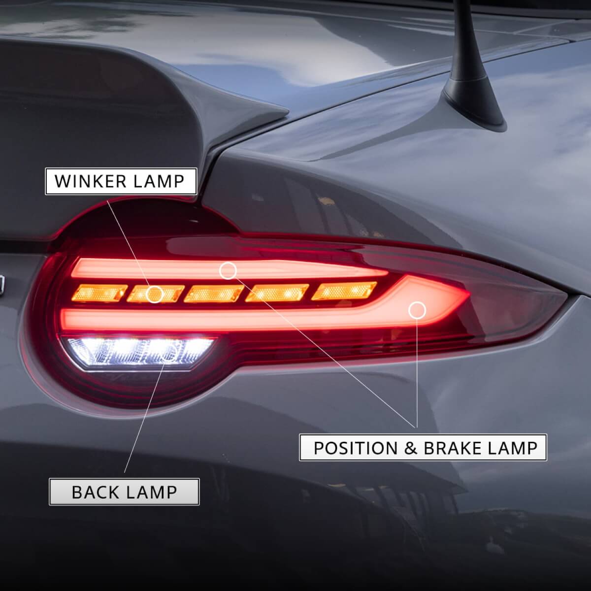 A sleek styling for the unique Mazda MX-5 Miata ND Roadster tail lights. Premium and futuristic!